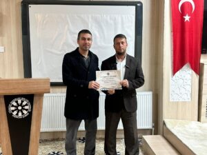 Programın sonunda, söyleşiye katkılarından dolayı İlahiyat Fakültesi Dr. Öğr. Üyesi Nihat Fırat tarafından konuşmacı Mehmet Kurtaran’a teşekkür belgesi takdim edildi. Ayrıca Serhat Türkeri tarafından kendisine kitap hediye edilerek program anlamlı bir şekilde tamamlandı.